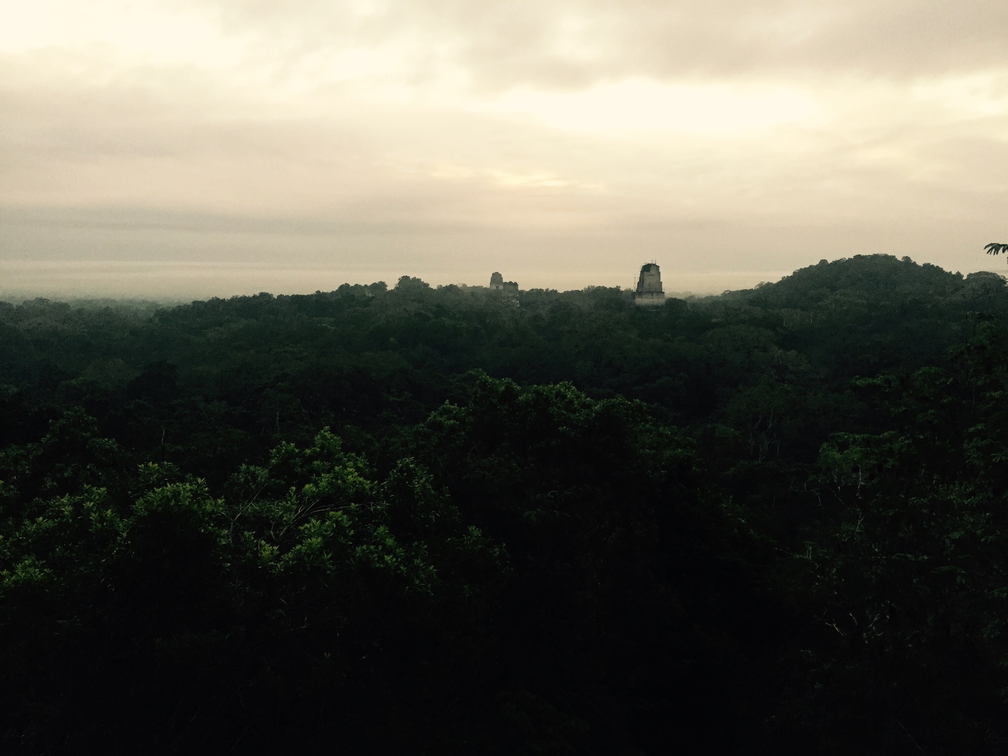 Da sitzen wir also um 6:30, schon seit vier Stunden wach, und warten bis die Sonne aufgeht. Aber sie kommt nicht. Nicht mal irgendwie eine spezielle Stimmung. Nur Wolken. Spektakulär ist es trotzdem, dieses Tikal.