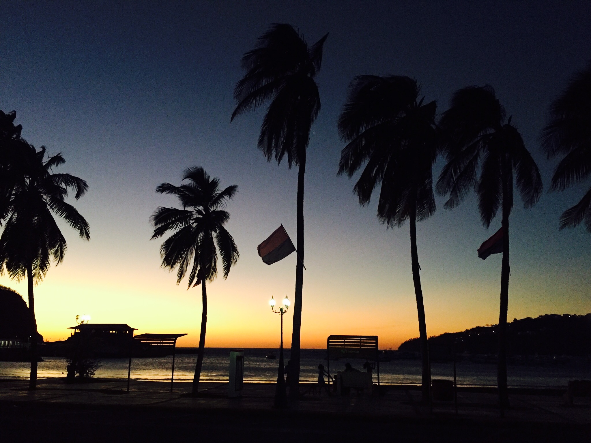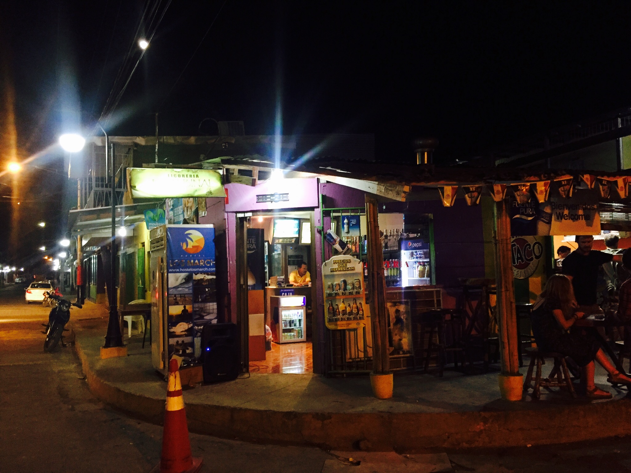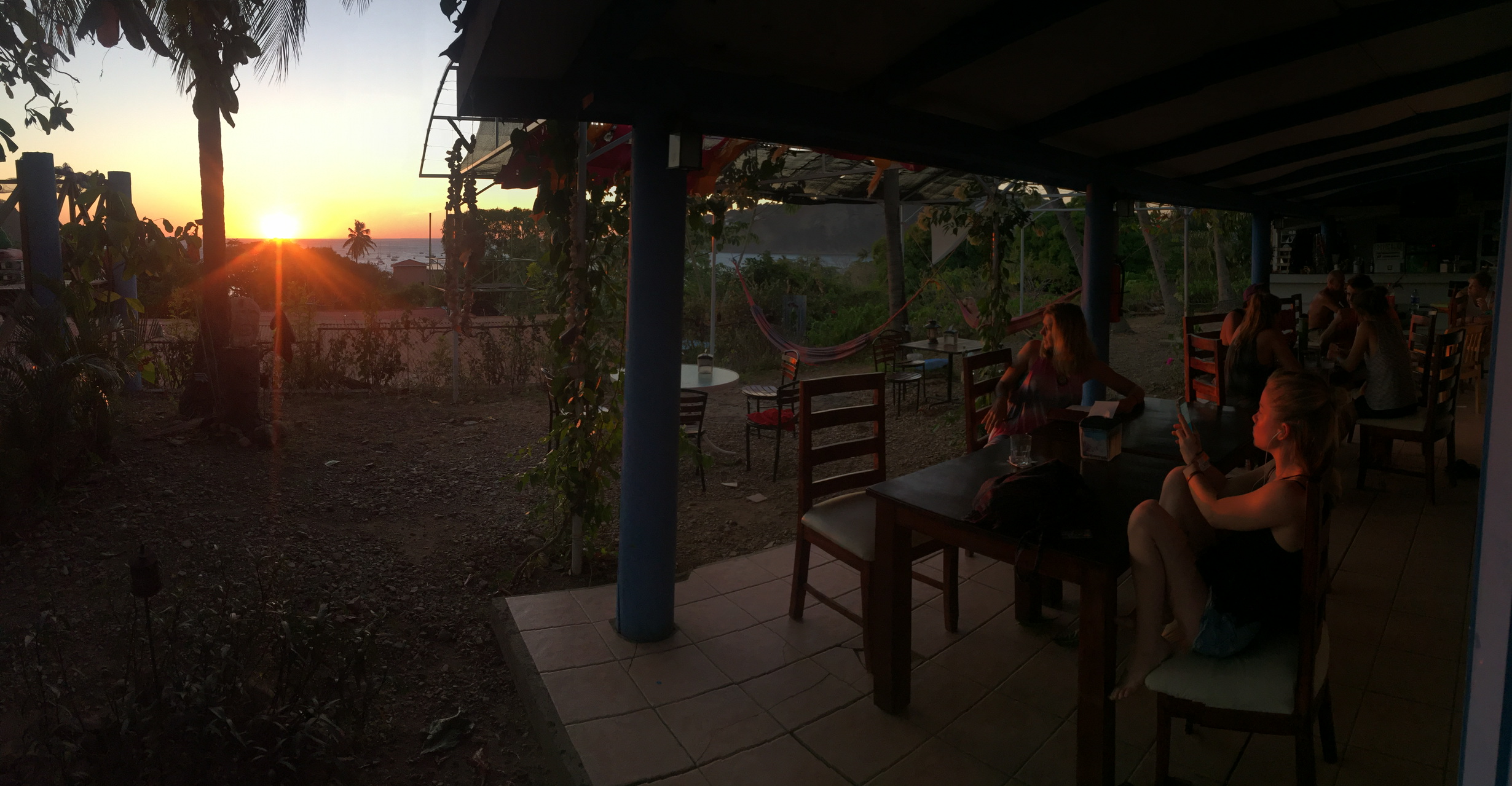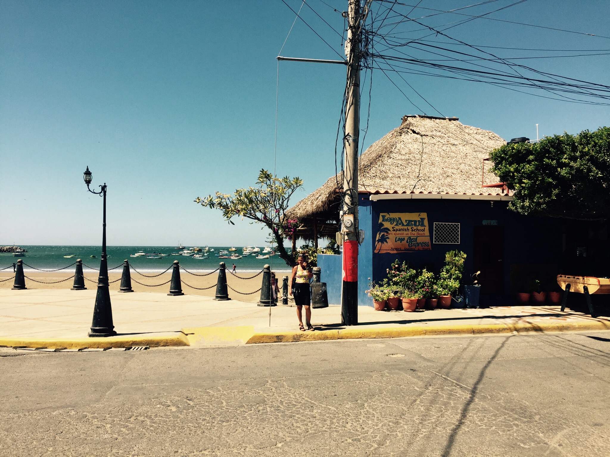 Dann fährt er ein, der Bus, in San Juan der Sur. Ich bin noch nicht ausgestiegen da wird mir klar, das wird nichts mit ruhig die nächsten Tage. Laute Musik aus allen Bars, getrunken wird hier aus Kokosnüssen, die Kleider sind grün- und pink-neon-farbig. Ich bin zufälligerweise in DEM Partydorf Nicaraguas gelandet, erfahre ich später. Normalerweise buche ich ja gerne ein Hostel in Zentrum. Vielleicht war es Intuition, dass ich diesmal eine Bleibe ein paar Minuten weg vom RambaZambe gebucht habe. Hostel «Los March», etwas erhöht, mit traumhafter Aussicht. Die Vibrationen der Bässe sind aber auch hier oben noch spürbar.