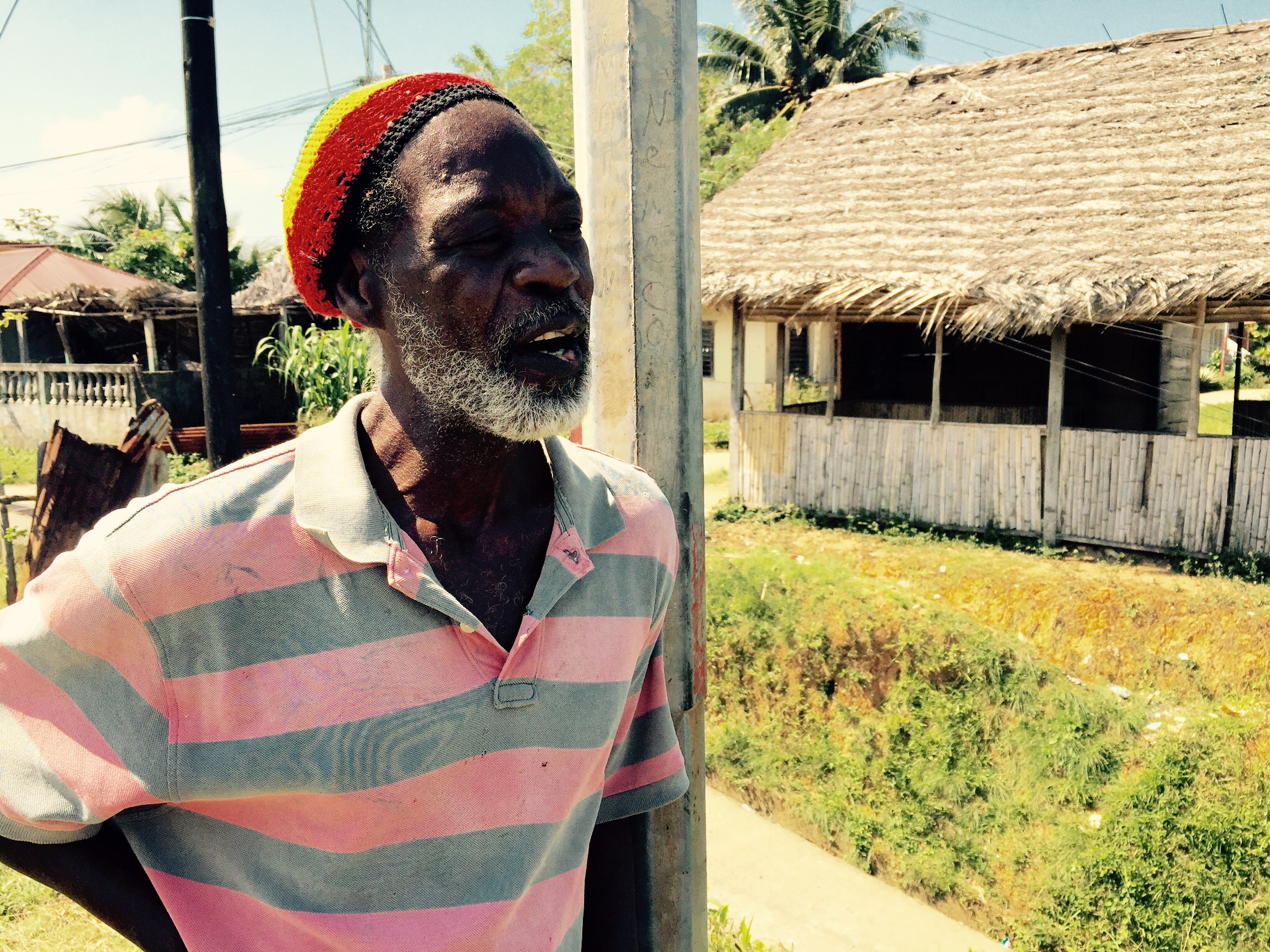 Schweine und andere Tieren laufen frei herum. Die Häuser werdet völlig unkoordiniert irgendwie Kreuz und quer ins Zeug gebaut. Kirchen gäbe es keine, sagt mir Phil. Auch ja Phil, heisst mein Begleiter. Phil Flores. Es liege finanziell einfach nicht drin, eine Kirche zu bauen. Das sei traurig. Aber, das heisse nicht, dass sie weniger spirituell und religiös seien, betont Phil. Damit seine Community weiterkommt, will er all das Geld, und all seine Energie in die Ausbildung der Kinder stecken. Er habe es geschafft, dass die Kinder in die Schule können, er habe dafür ein Projekt auf die Beine gestellt. Stolz zeigt mir Phil die Schule. Ein Rohbau aus Beton. Ich finde es immer spannender, gleichzeitig wird der Zustand der Häuser immer erbärmlicher. Jedes zweite scheint ein Geisterhaus zu sein. Touris sind hier weit und breit nicht in Sicht. Da leben die Leute in ihrem Dreck. Das Abwasser läuft in einem kleinen Graben an den Häusern vorbei. Überall ist die Musik von Bob Marley zu hören. Die meisten Menschen machen einen karibisch entspannten Eindruck. Phil führt mich aber auch an Typen vorbei, denen ich nicht mal meinen Chugi ausleihen würde.